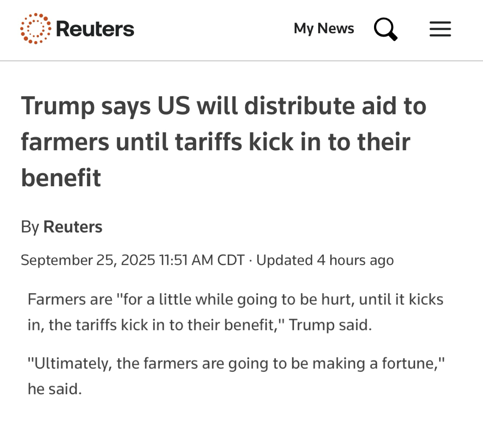 Trump announced that US farms will receive some of the proceeds from tariff revenues.