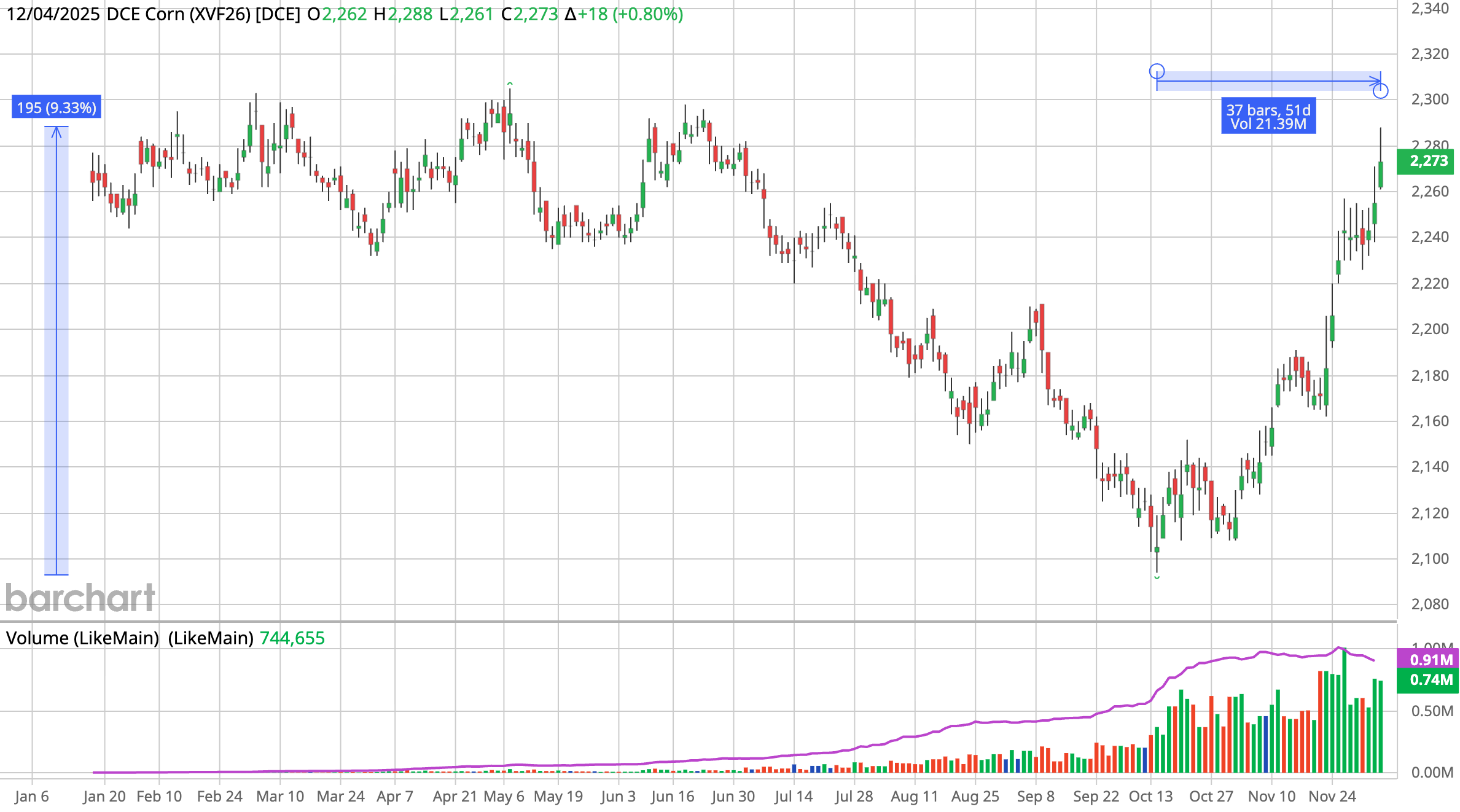 China's November port stocks hit 5-year lows. Meaning their physical corn situation on the ground is tight.