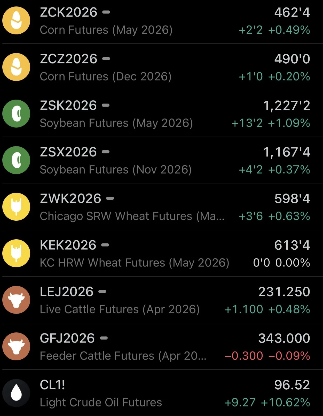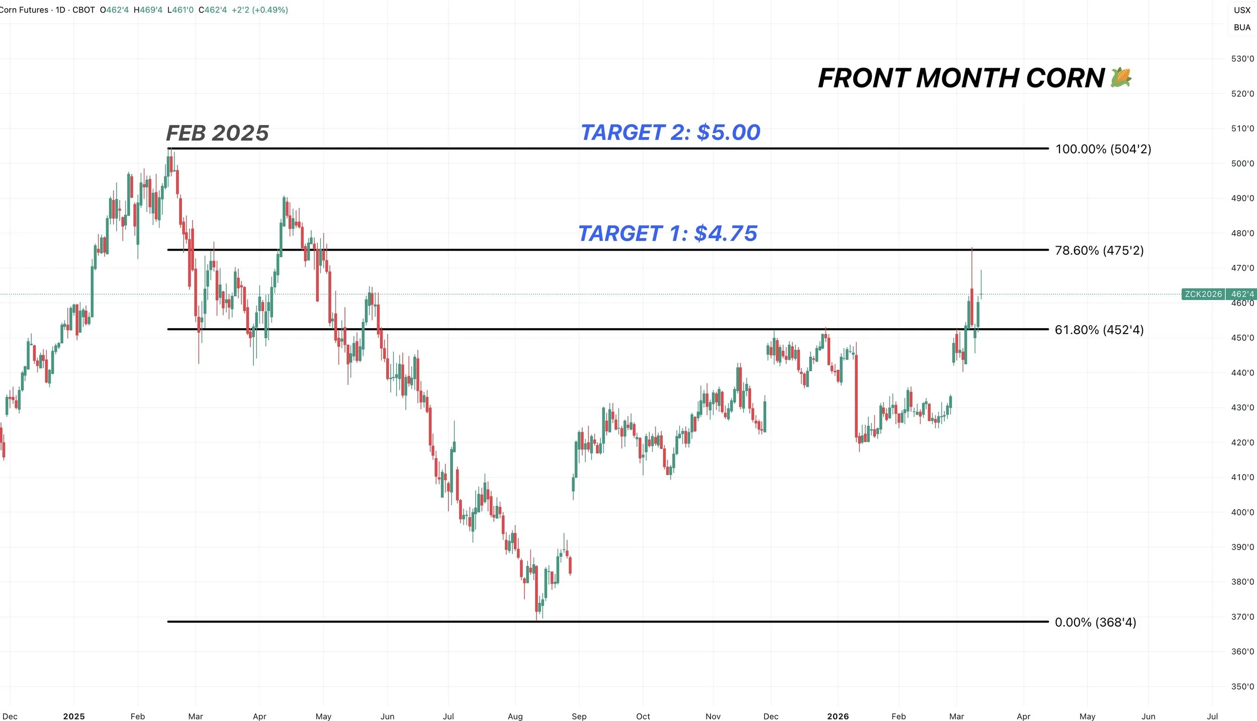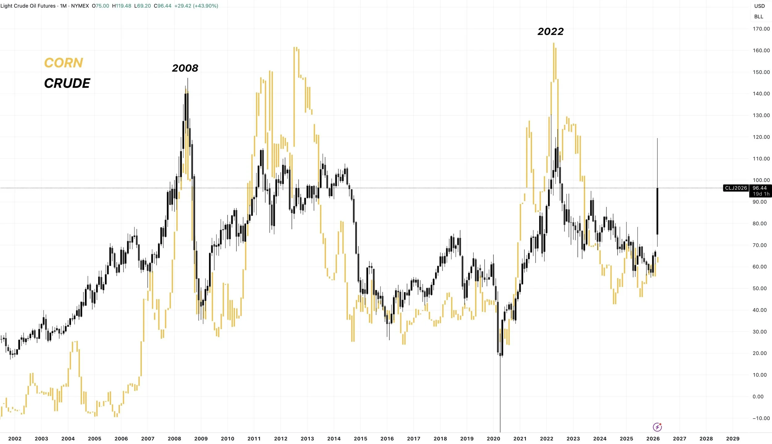 The risk is of course, that everyone gets long corn, then the war comes to an end. Crude falls apart. Corn follows it, those longs hit the exits. This crazy volatility can go both ways.