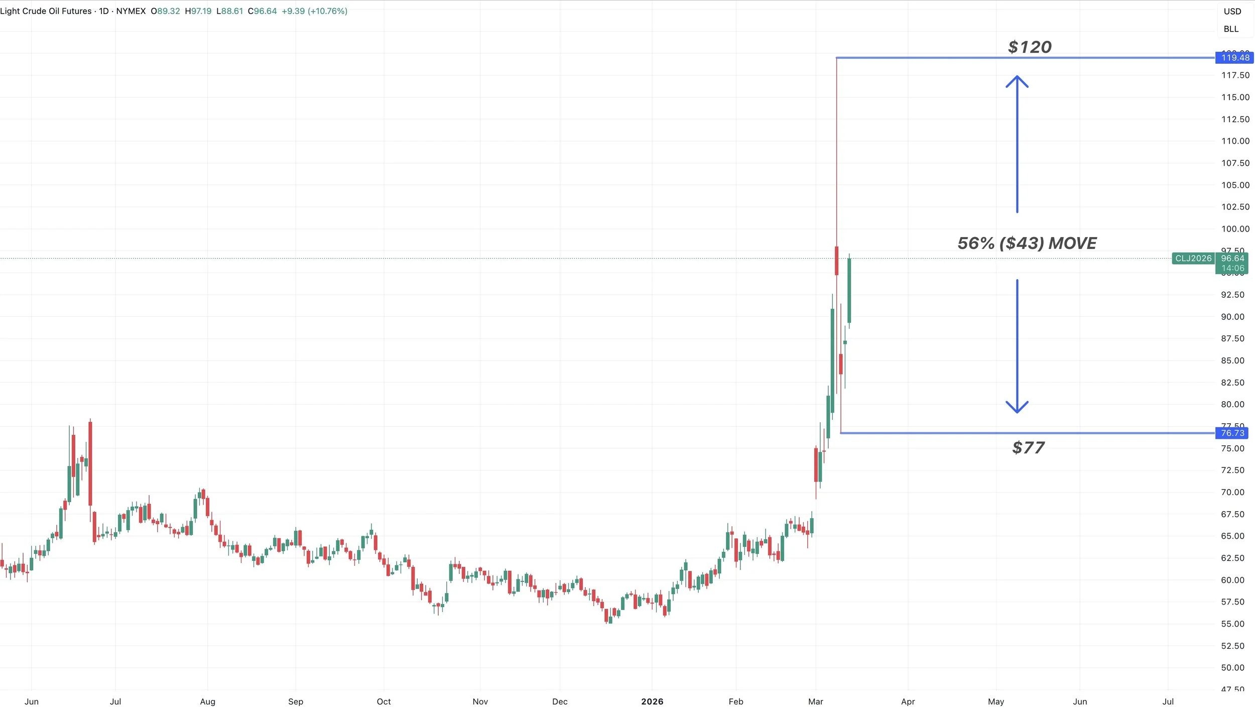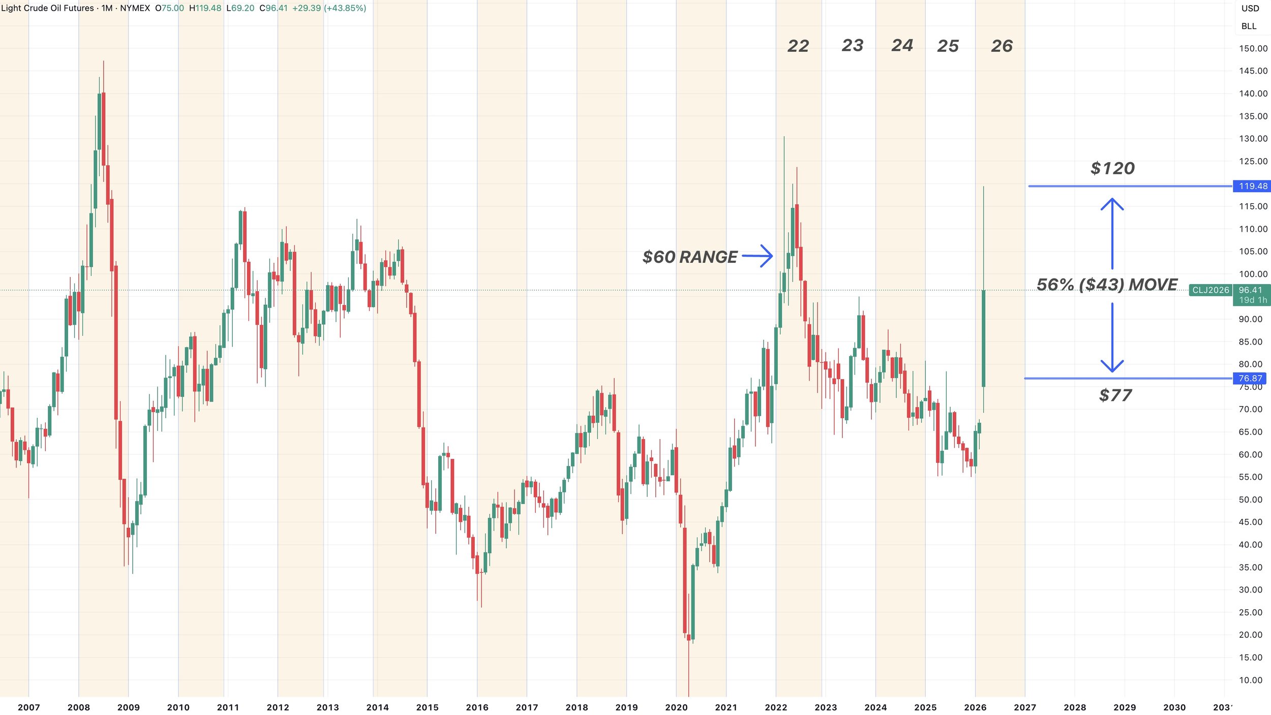 The last year crude has a trading range larger than the range we saw this week was back in 2022.