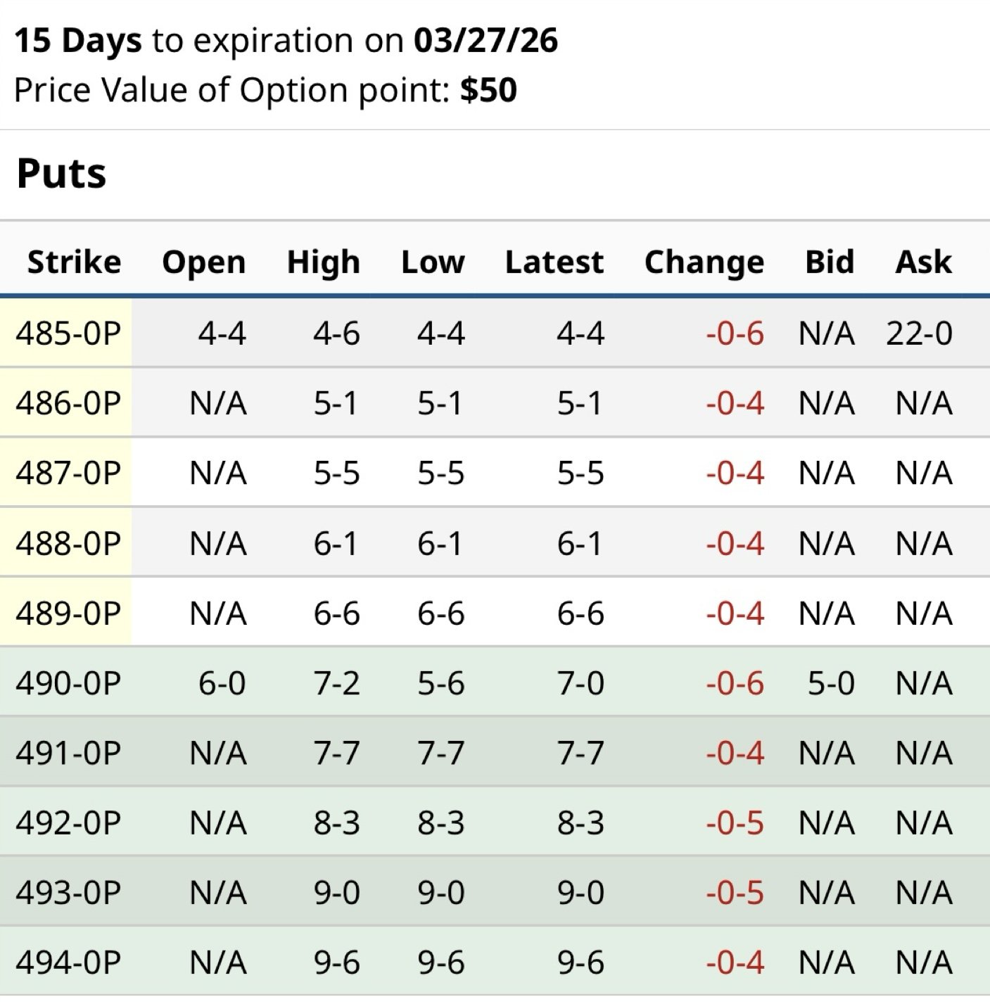 You can get a $4.90 new crop put that expires at the end of March for around 7 cents.