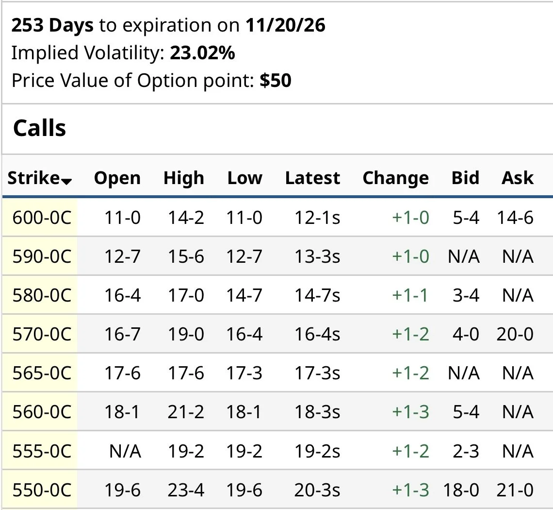 So for an example, you could sell a $6.00 new crop call that expires at the end of November and collect 12 cents.