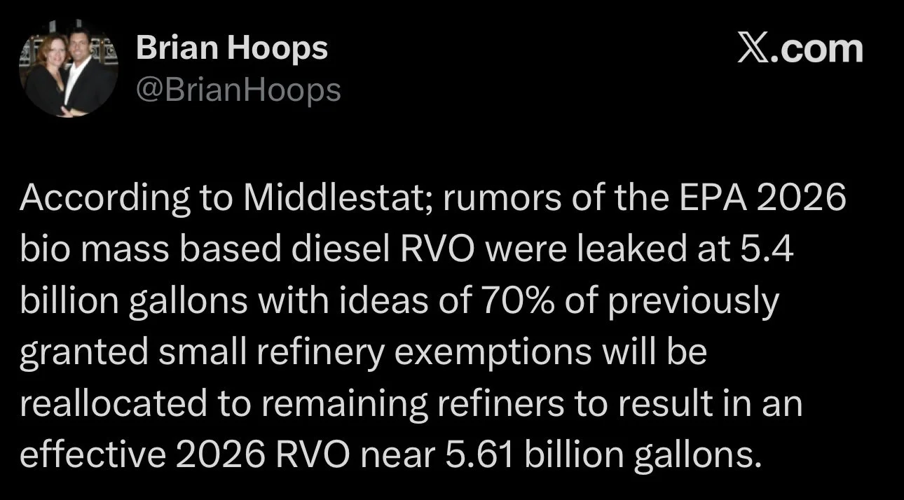 The rumor was a reported leak of the EPA's RVO numbers for 2026.