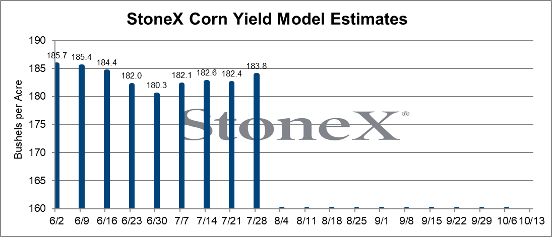 Without changing the demand side of the balance sheet, if yield were to get bumped to this StoneX number of 183.5 we would be looking at a carryout of 2.3 billion and a stocks to use ratio of 15.4%.
