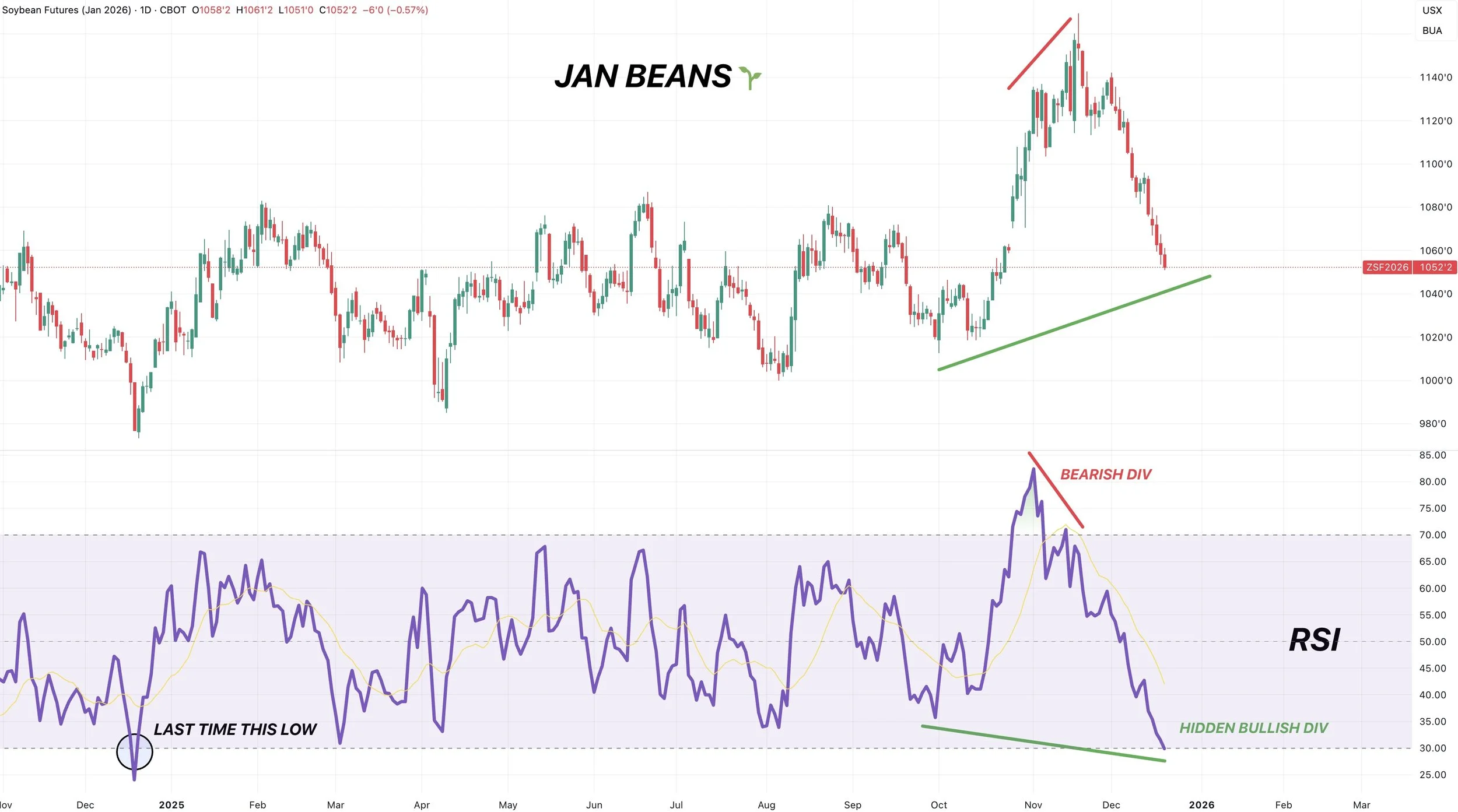 March soybeans are also showing the same hidden bullish divergence.