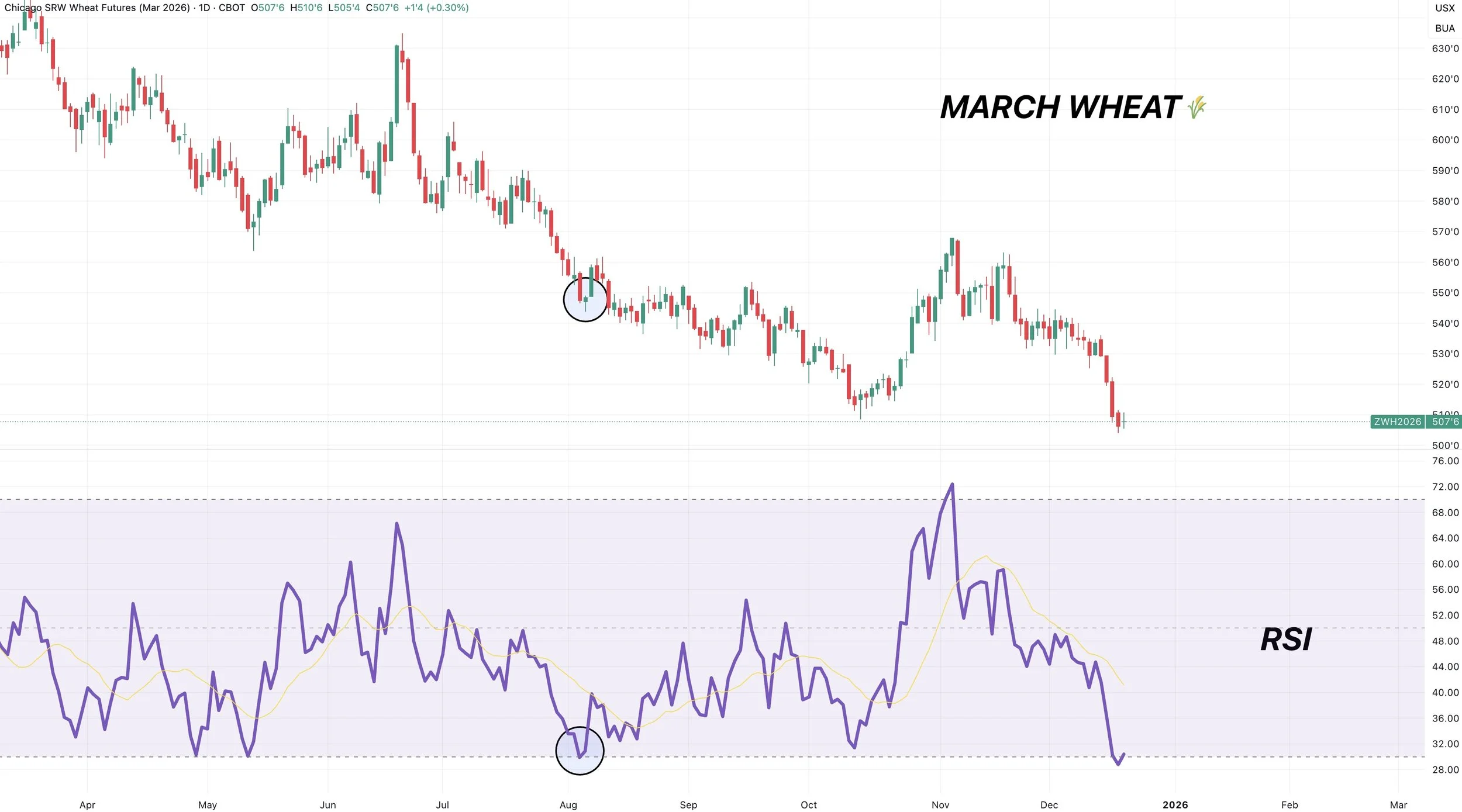 Here is another example, this time in Dec-25 Chicago wheat.