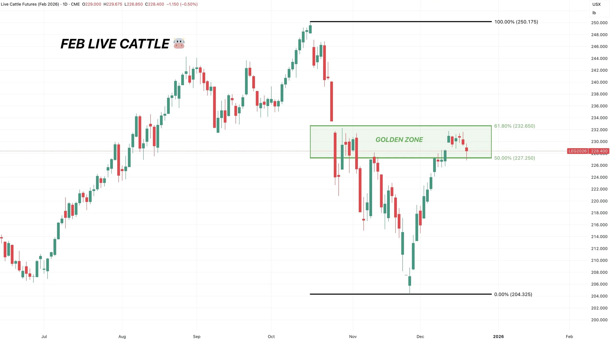 So until we are proven wrong, and cattle breaks above that 61.8% level. The rally in cattle should be viewed with caution.