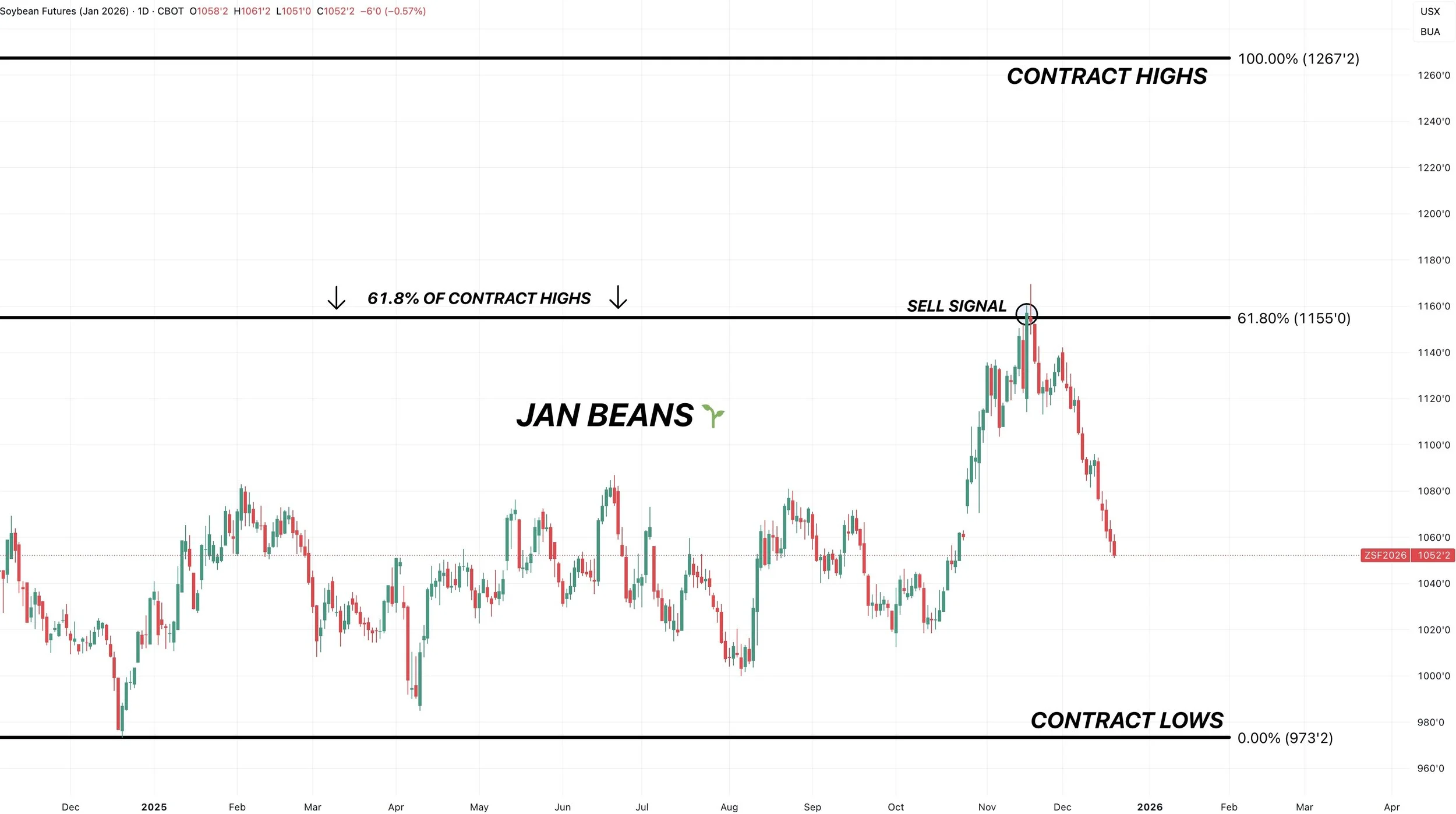 Meaning we have almost given back 61.8% of those November highs down to our contract lows.