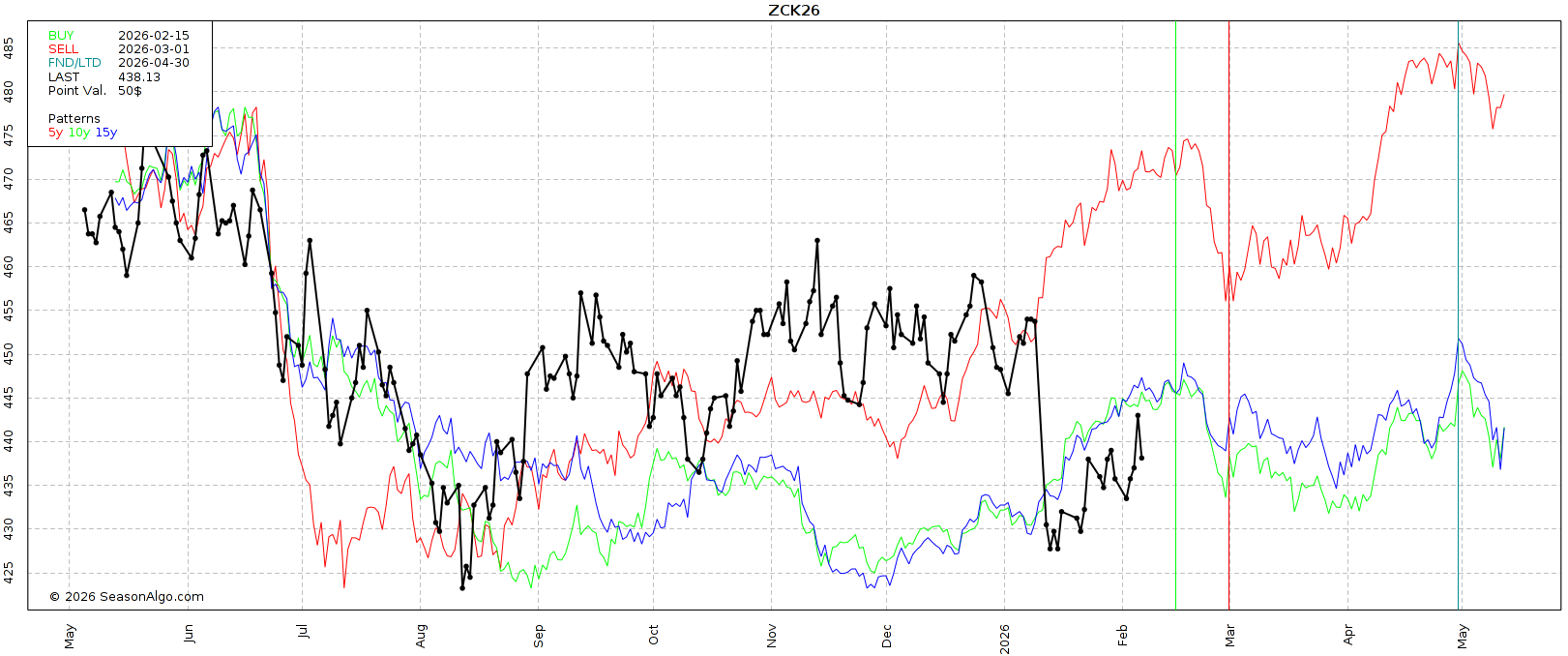 Corn has traded lower the last 8 of 11 years during the second half of February.