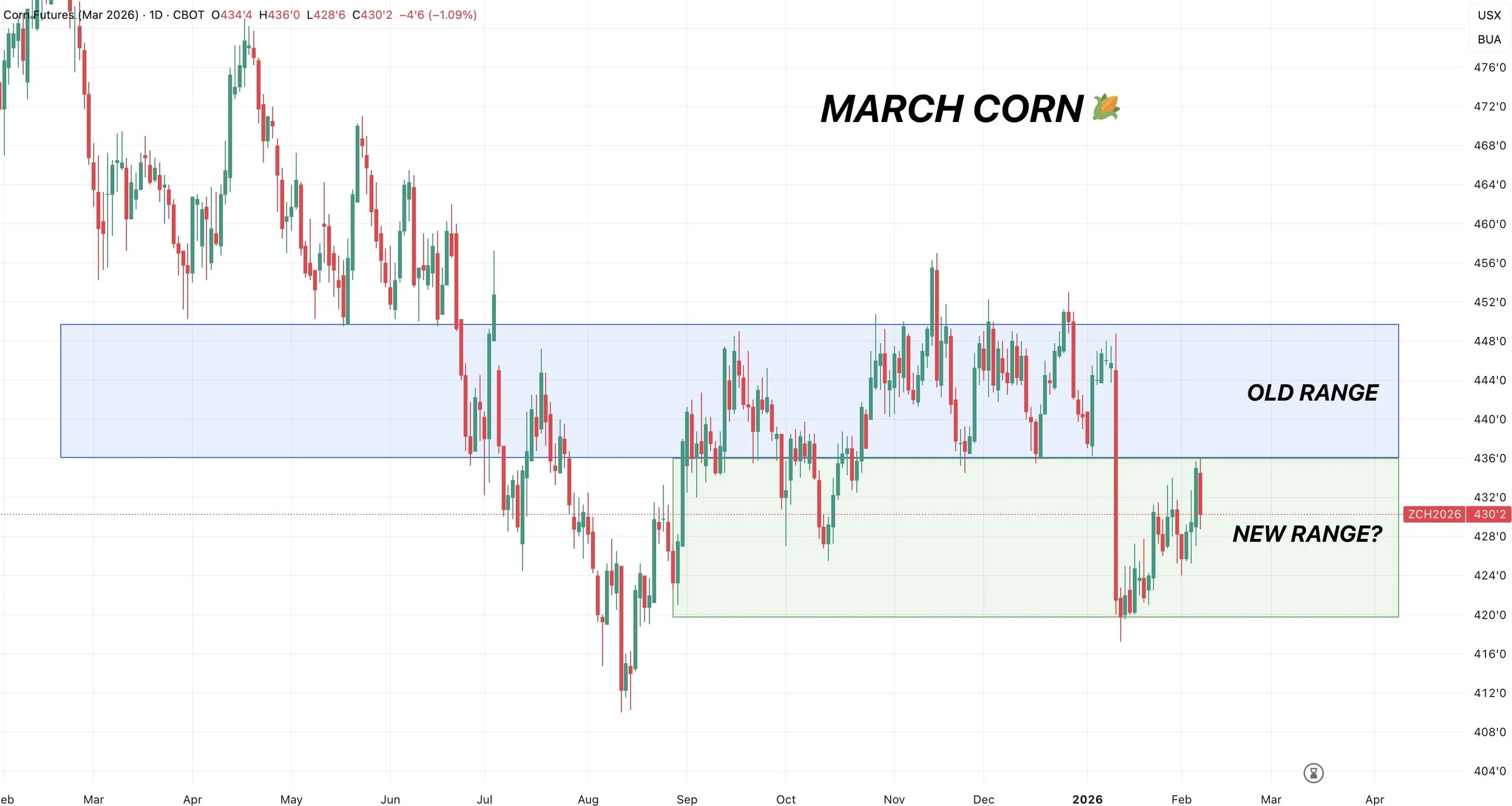 It makes sense that corn would simply be stuck in a range bound range until we get fresh data and planting intentions etc.
