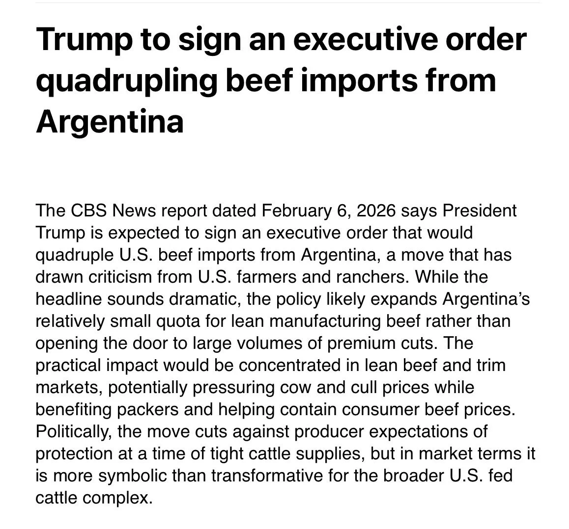 Today Trump did sign an executive order to quadruple beef imports from Argentina.