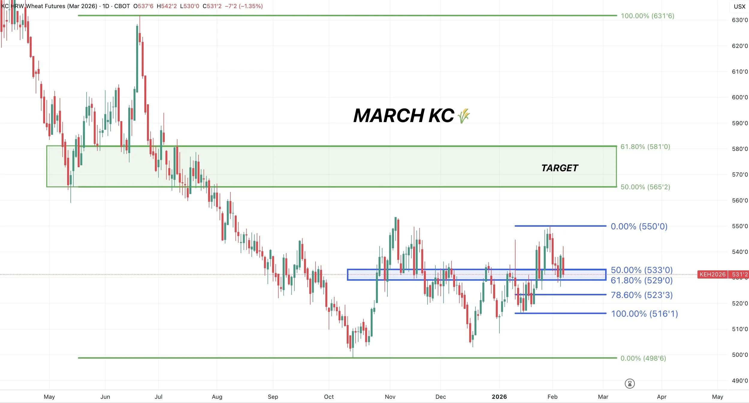 To the downside, like KC, we are at a critical spot. The golden zone retracement levels (red box).