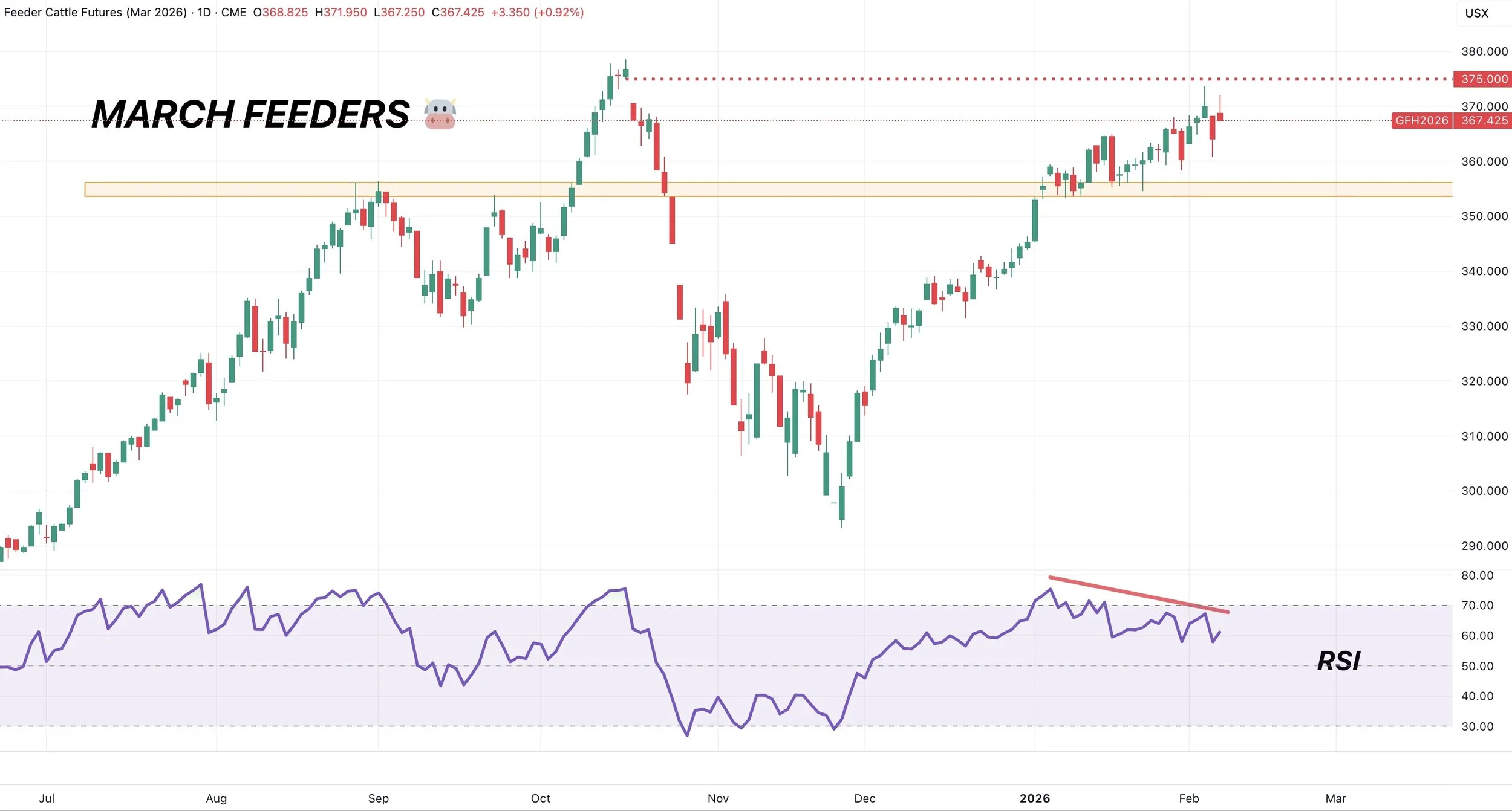This doesn’t mean cattle has to top tomorrow. It doesn’t mean we can’t go post new highs.