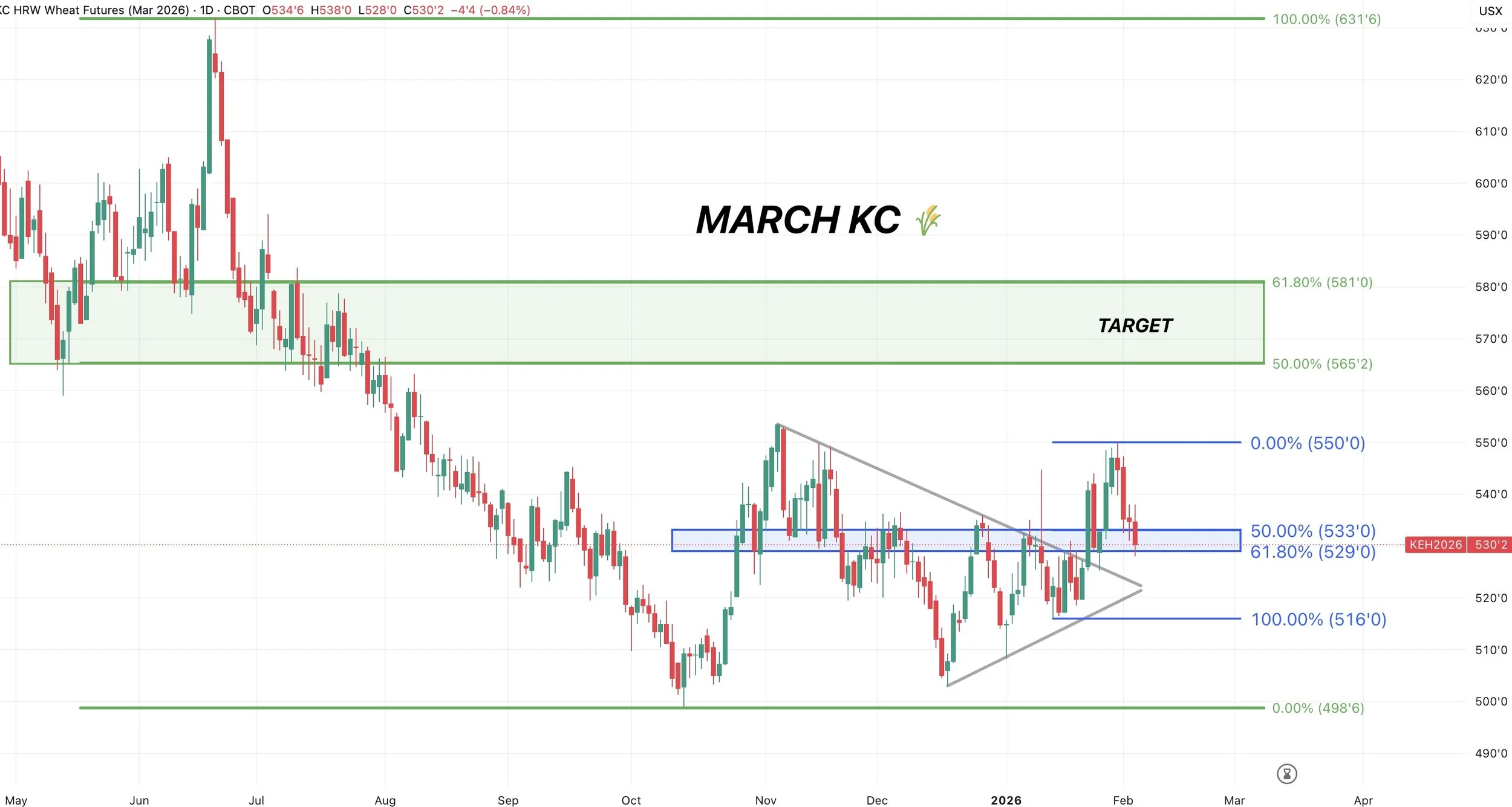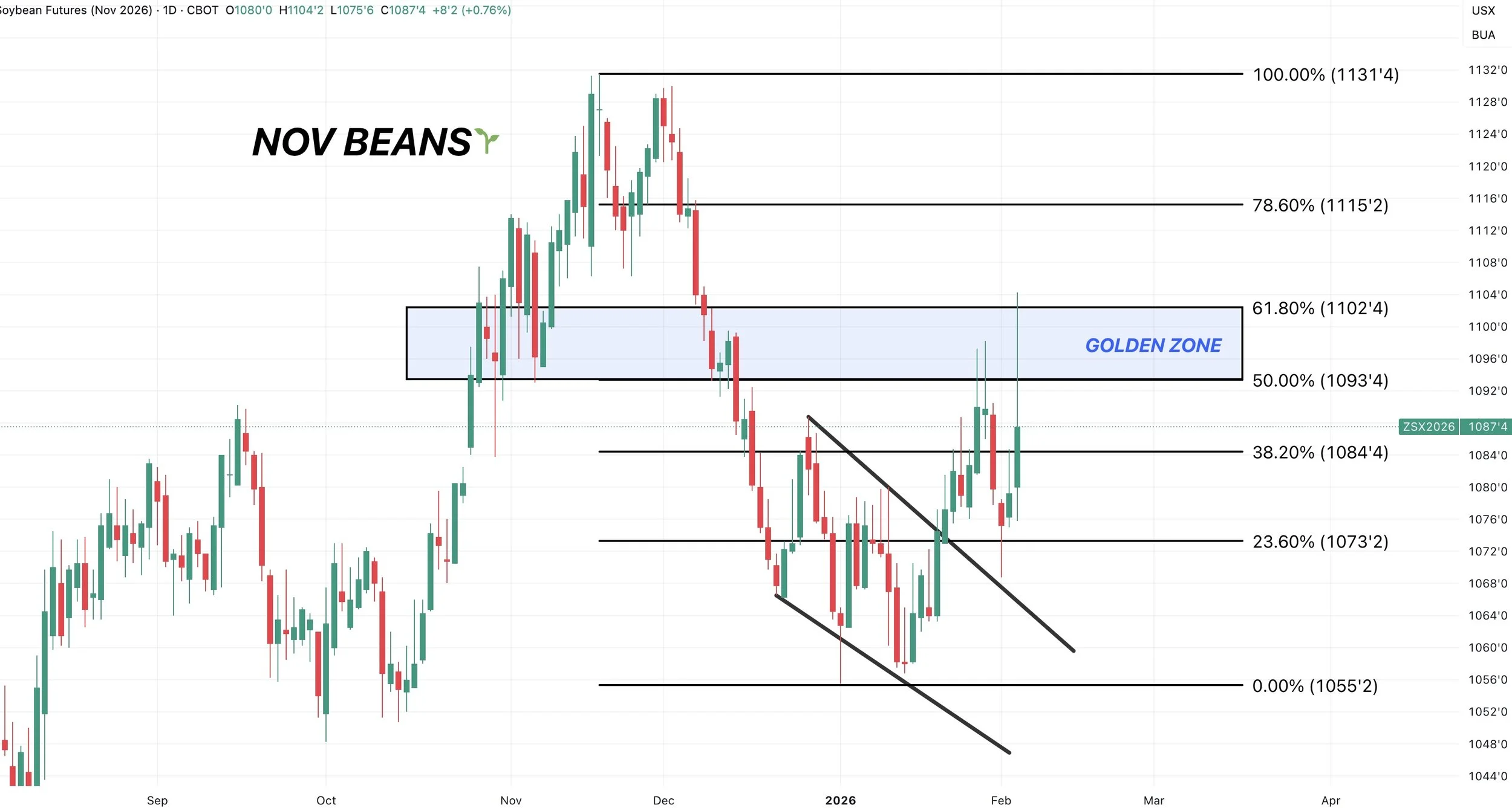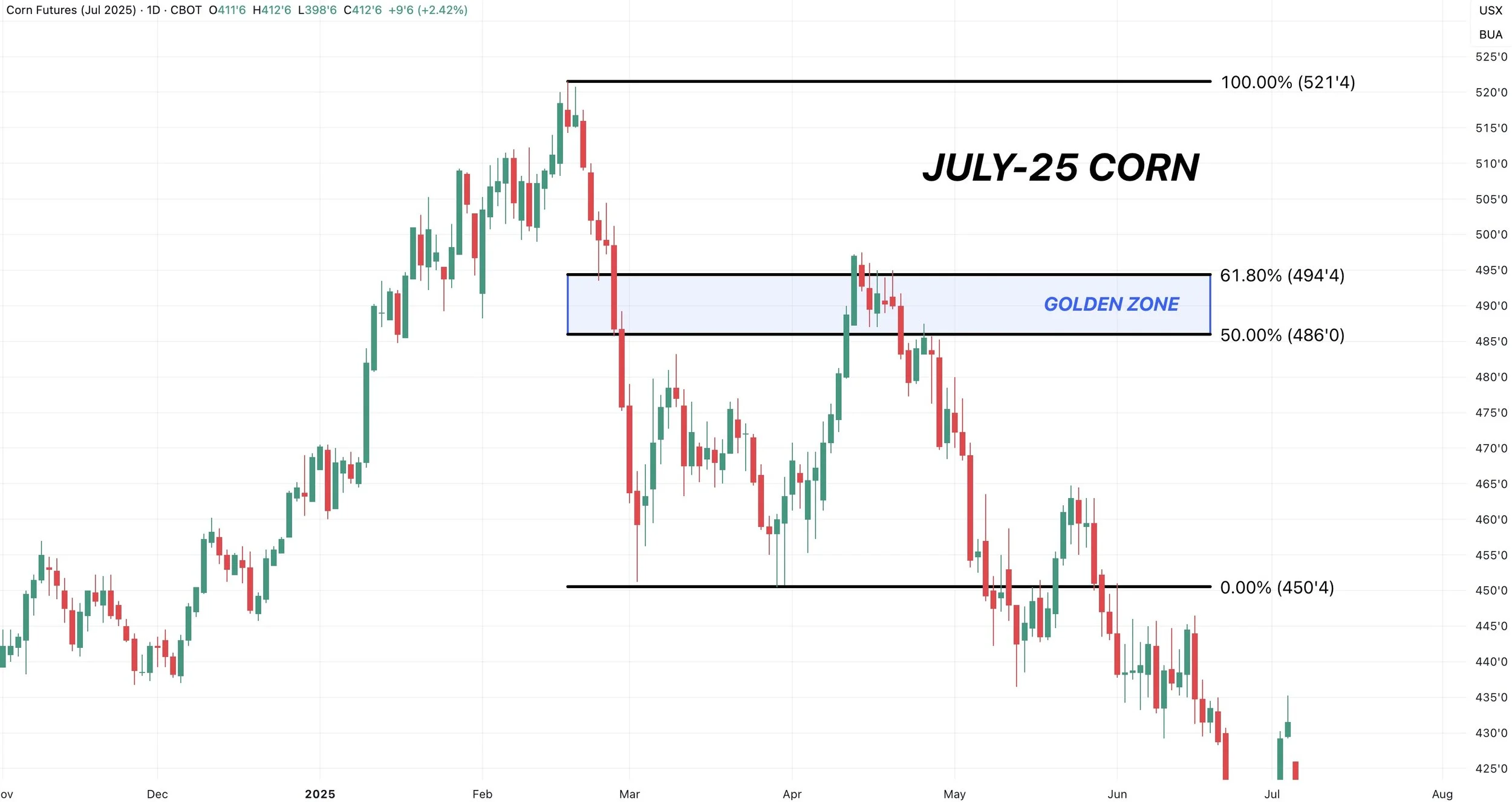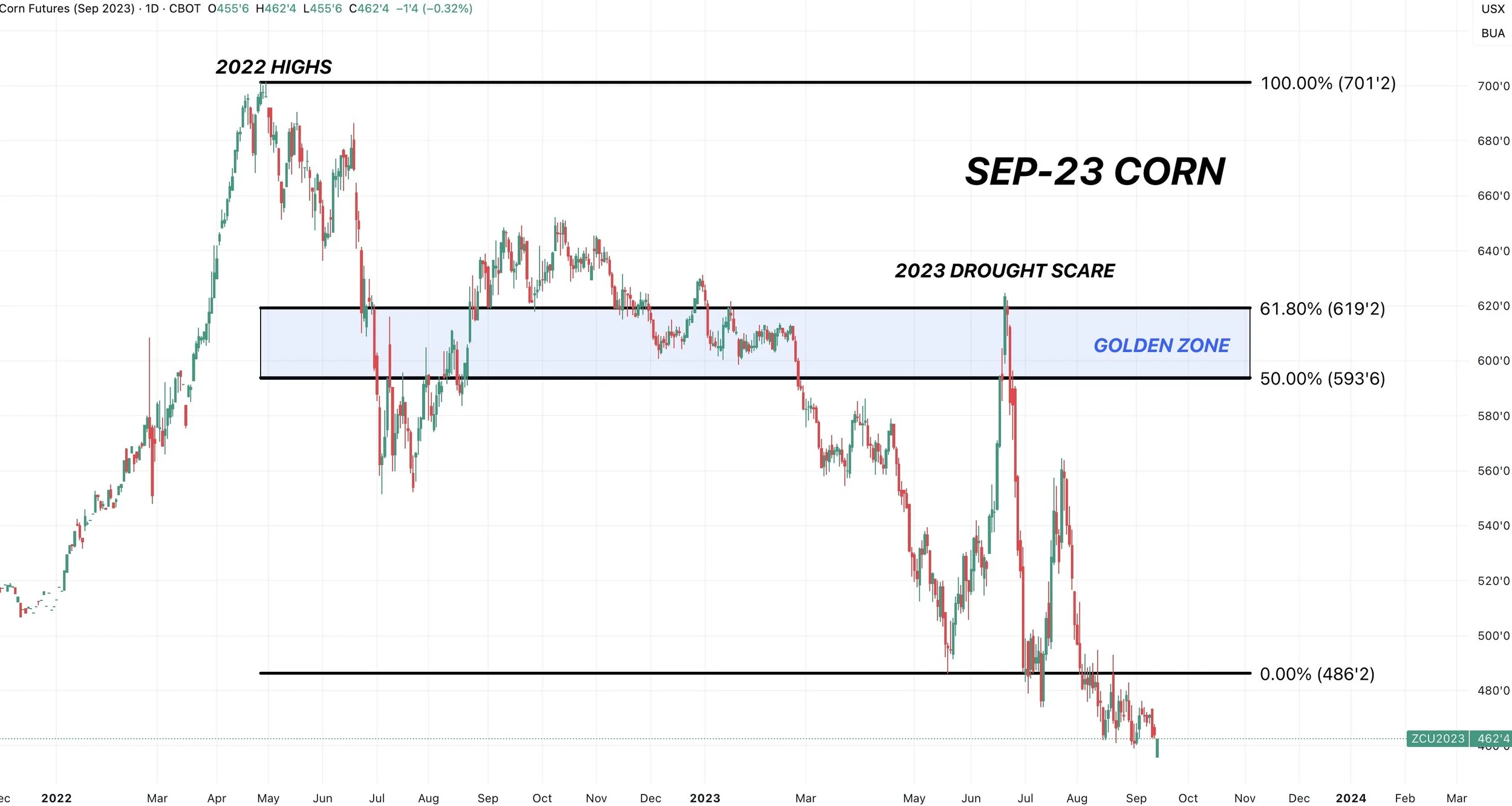 To the downside, like KC, we are at a critical spot. The golden zone retracement levels.