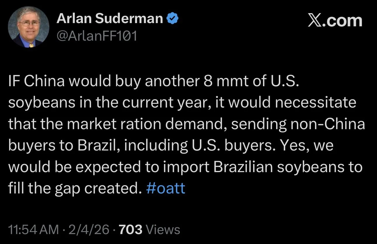 Something to keep in mind is that China probably won’t come in and buy these soybeans right now. They are going to be busy with Brazi's crop. We also have the Chinese new year coming up soon.