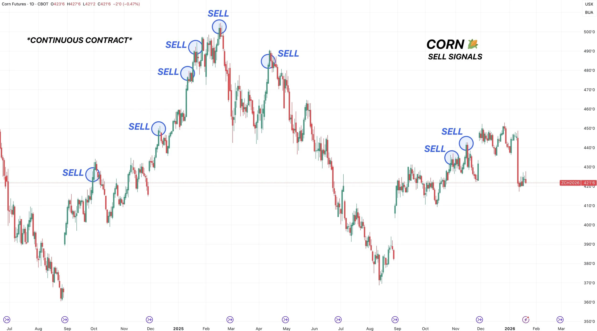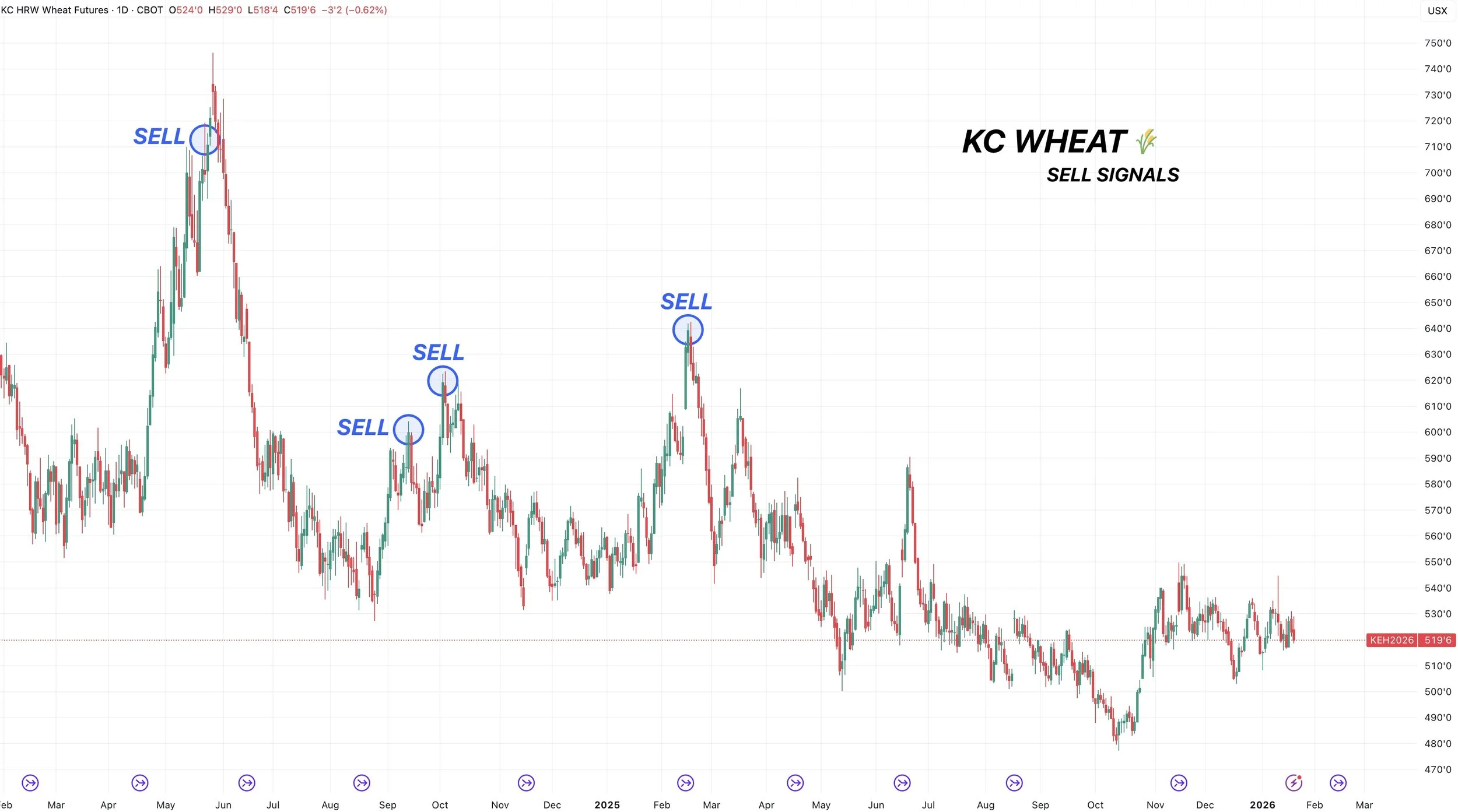 Our sell signals in grains the past year.