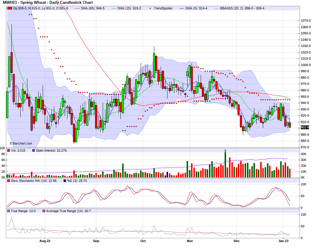 Despite prices usually falling as spring approaches, SovEcon said they believe wheat prices bottomed out in December and are headed higher. Personally, I also think there is a fairly good chance we made our lows in December. Yes typically we see lower prices as spring comes, but this past year didn't follow any normal trends because it wasn't a normal year with the war and everything going on. I think there is a good chance we see prices climb higher looking long term towards spring.