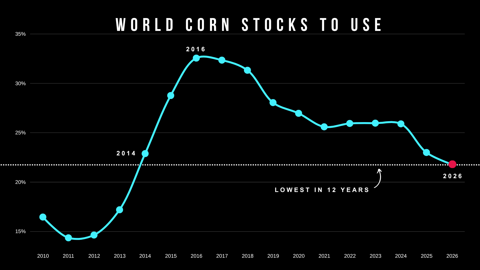 Based on the world situation, the world still needs to buy corn from the US. As the rest of the world is the tightest it has been on corn in over a decade.