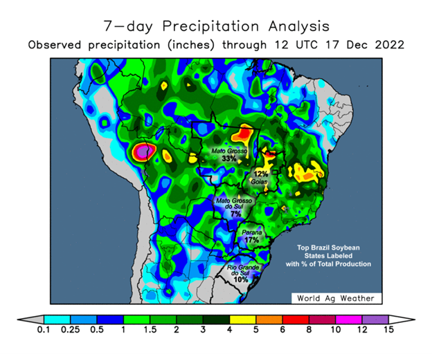 We all know South America is a risk in the markets if we want higher prices and bulls want to see a weather scare to give prices that bullish catalyst we need for higher prices. Current outlook for Brazil is still cooperative but its still very early and there is plenty of time for things to change. We are now entering a very crucial window for South America for the next month or two.