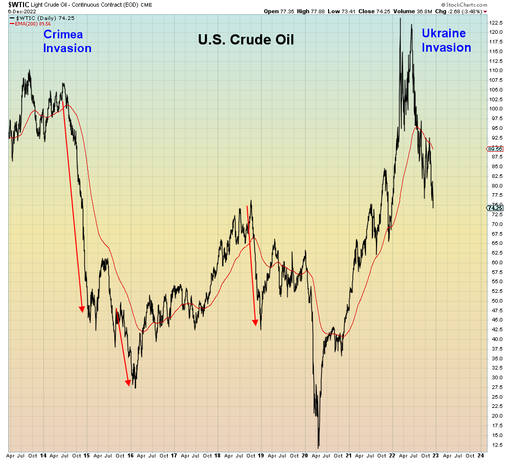 Crude oil has given up all of its 2022 gains. Falling to 10-month lows. As it continues to fall, falling below $75. Down nearly -$3 (-4%)