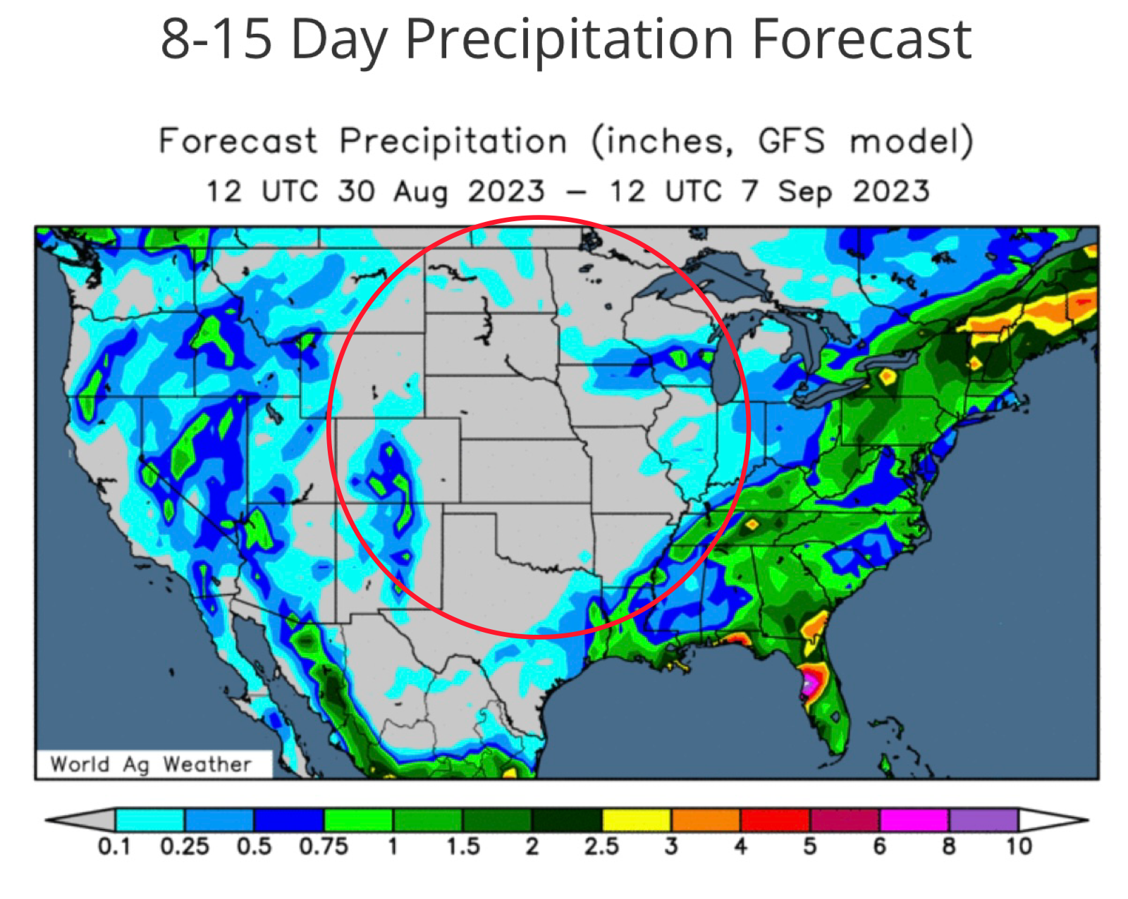 From what I’ve seen on social media, I think we will see these Pro Farmer crop tours support us to close out the week. Today we have Iowa and Illinois, then tomorrow we have the rest of Iowa and Minnesota. We all know the issues Minnesota has faced with their weather.