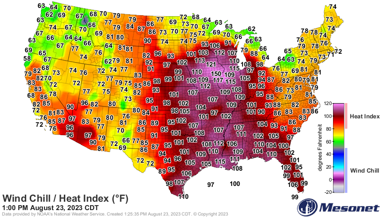 Here was the heat index today. This isn’t actual temperatures. This is just how "hot it feels". Was that 150 degrees a typo? Absolutely brutal heat for those on the crop tours.