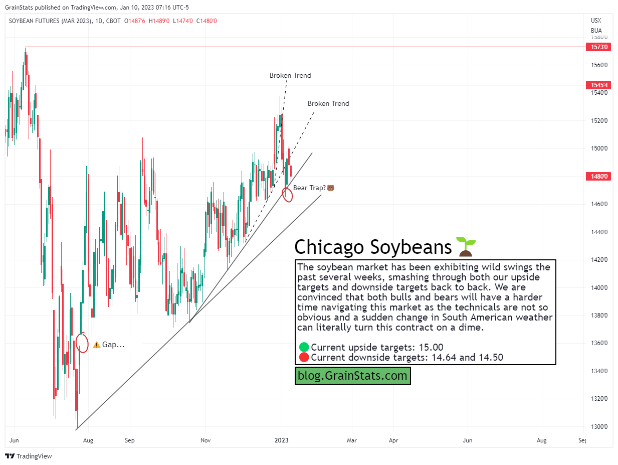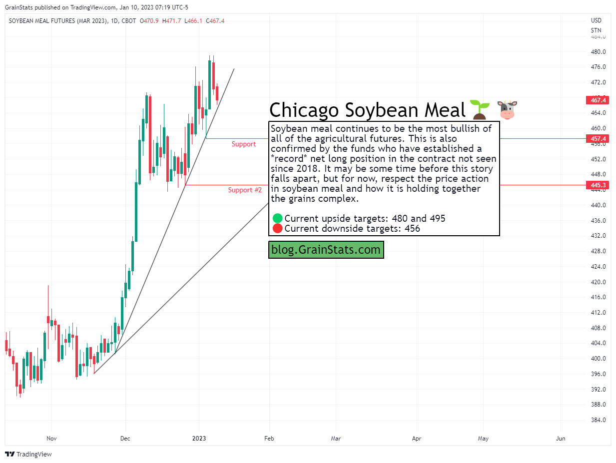 Something bulls are looking at is less soymeal being available in Argentina this year and optimism that we see China reopen and see their economy improve. But then again, there are a ton of uncertainties surrounding China and sometimes it seems like they don't want to do much business with the U.S. China still has a long ways to go in their battle with covid.