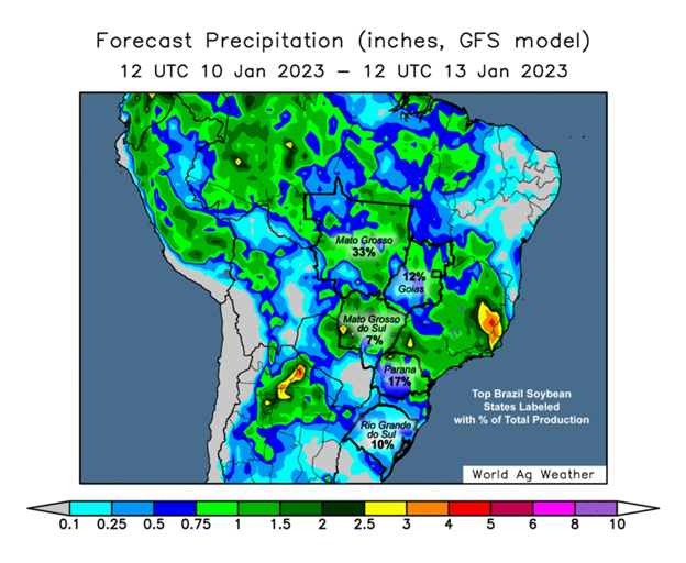 For the first five days of the year, Brazil exports came in at 1.9 MMT. In comparison, last years total exports for the month of January totaled 2.7 MMT. So this could lead to some serious competition in exports if they keep up this pace.