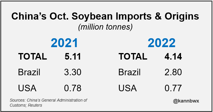 China's Oct. Soybean Imports. Credit to Karen Braun @kannbwx on Twitter