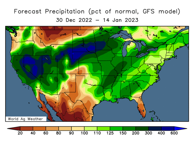 Outlook for Argentina is dry. They might get some small rains over the weekend. But after that its looking like forecasts turn very hot and dry for the most part. If they don’t get rain I just don’t see a ton of reasons for us not to push a little higher here going into the new year. But of course we will likely see prices see some profit taking here in the next few trading days, but there is still quiet a bit of upside. Soybeans have pushed past every nearby resistance, if things play out right we could see prices climb to the $15.50 - $15.60 range which was our high back in June.