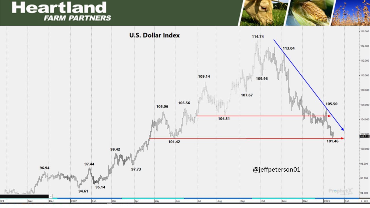 The main thing keeping a lid on wheat is still the cheap global competition. As countries across the world are able to offer their supply at a discount. The weakening dollar is supportive of helping the U.S. be more of a competitor with those cheap global prices. Hopefully we continue to see the dollar weaken and see U.S. exports gain more interest from buyers.