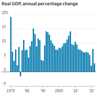 The Chinese GDP was reported to increased by 3% for 2022. Aside from the covid year in 2020, this was China's slowest growth they’ve seen since since 1976. Last year was 8.1% compared to this years 3%, a 5% swing.