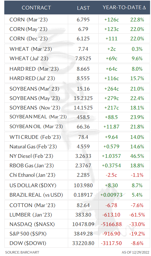 South America’s weather over the next two months, China opening up, and global demand are variables that could impact prices moving forward. Plus, one of the biggest USDA reports of the year on January 12th will provide the final yield and stocks numbers and give the market direction.