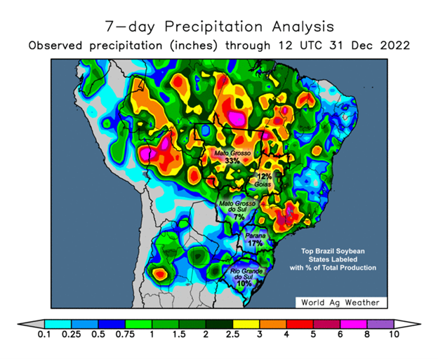 There current forecast calls for pretty good rain in January across the central/eastern region while southern Brazil is still facing some concerns as they have been receiving less rain.
