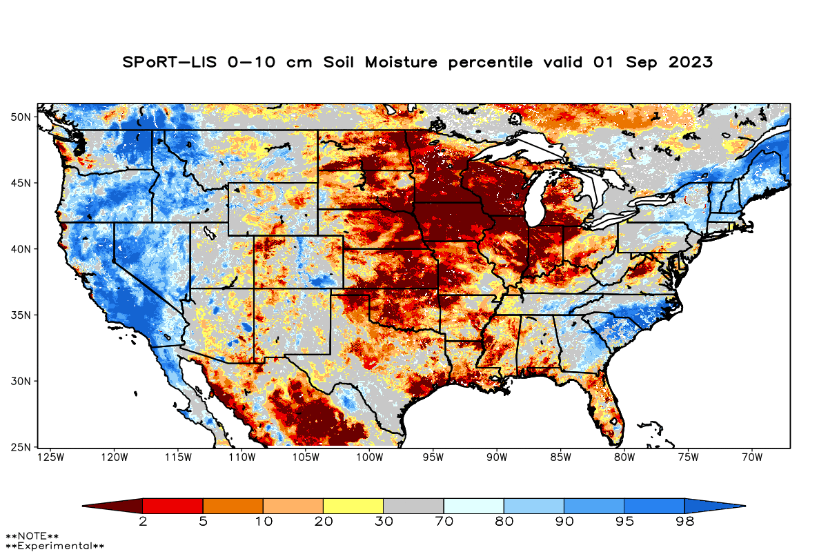 Here is the current soil moisture situation. This heat and lack of moisture is hurting.
