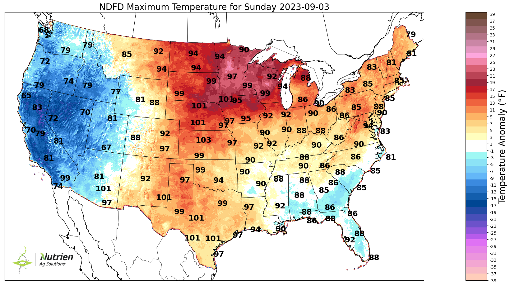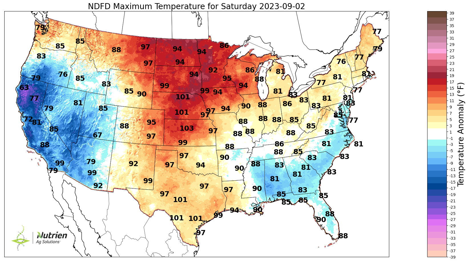 Here is the 14-day precipitation anomaly % of normal. Not a good way to finish this crop.