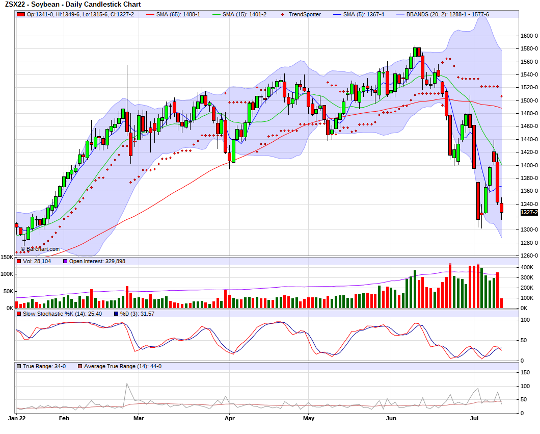 Last night we saw Ukraine Government say that they feel like they are nearing agreements with Russia, to allow the closed ports to ship. Even with this news, most people don't actually expect them to come to a full agreement any time soon. But this news is just enough for bears to point to and sell to the downside. Even if this is pretty doubtful, we have to take into consideration the money flow and the global recession fear. Even with all the uncertainty and problems we've seen with Ukraine and India, the slightest news on the possibility for exports ignites selling with the current situation the wheat markets are in.
