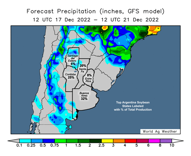 The short term forecast for Argentina remains hot and dry which has been adding support to the market. And most think we will see the USDA lower their Argentina estimates further. But if Brazil continues to remain in good shape, this may not have as big of an effect as one would like. As the record crop expected in Brazil could create a lot of competition.