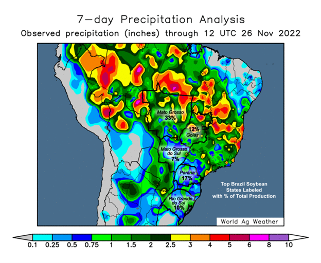 One one hand we have South America and Brazil expecting record crops, on the other there is a lot of uncertainty going forward and there are a few dry areas being monitored in both Brazil and Argentina. So my largest concern going forward is that we don't get that weather scare we need for prices to climb higher as if we don't, this large crop could very negatively effect prices. But then again, nobody knows and we very well could get a weather scare. For the time being I'm sitting on the sidelines waiting until we get a better outlook. The China lockdowns and protests have also added a ton of uncertainty to these markets.