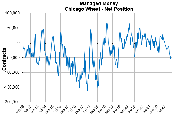 Funds continue to add to their short position. As they currently hold their largest net short position in Chicago wheat since May of 2019.