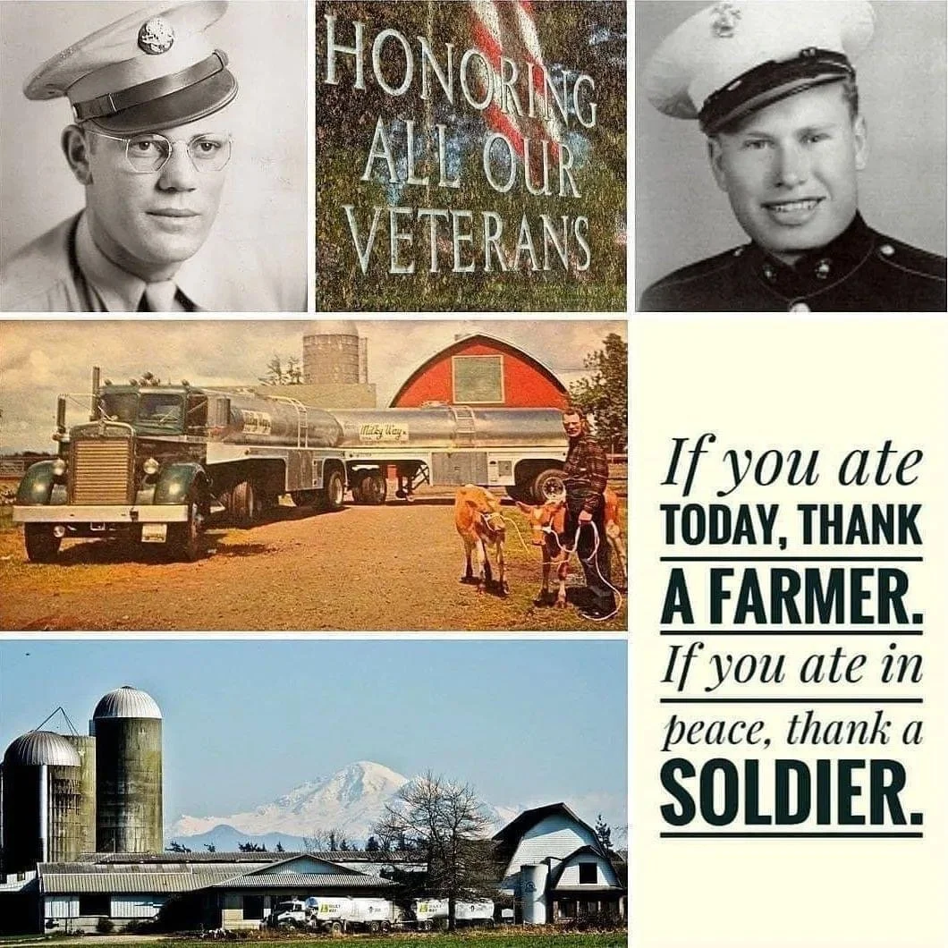 This picture collage pretty much sums up life. Thank you farmers and thank you Veterans.