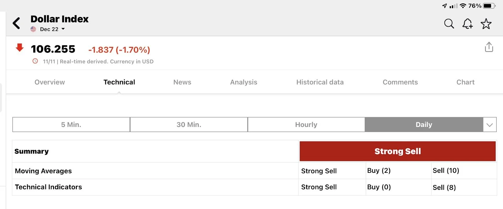 So I am going to show you a couple charts as well as technical buy/sell signals from investing.com and Barchart.com