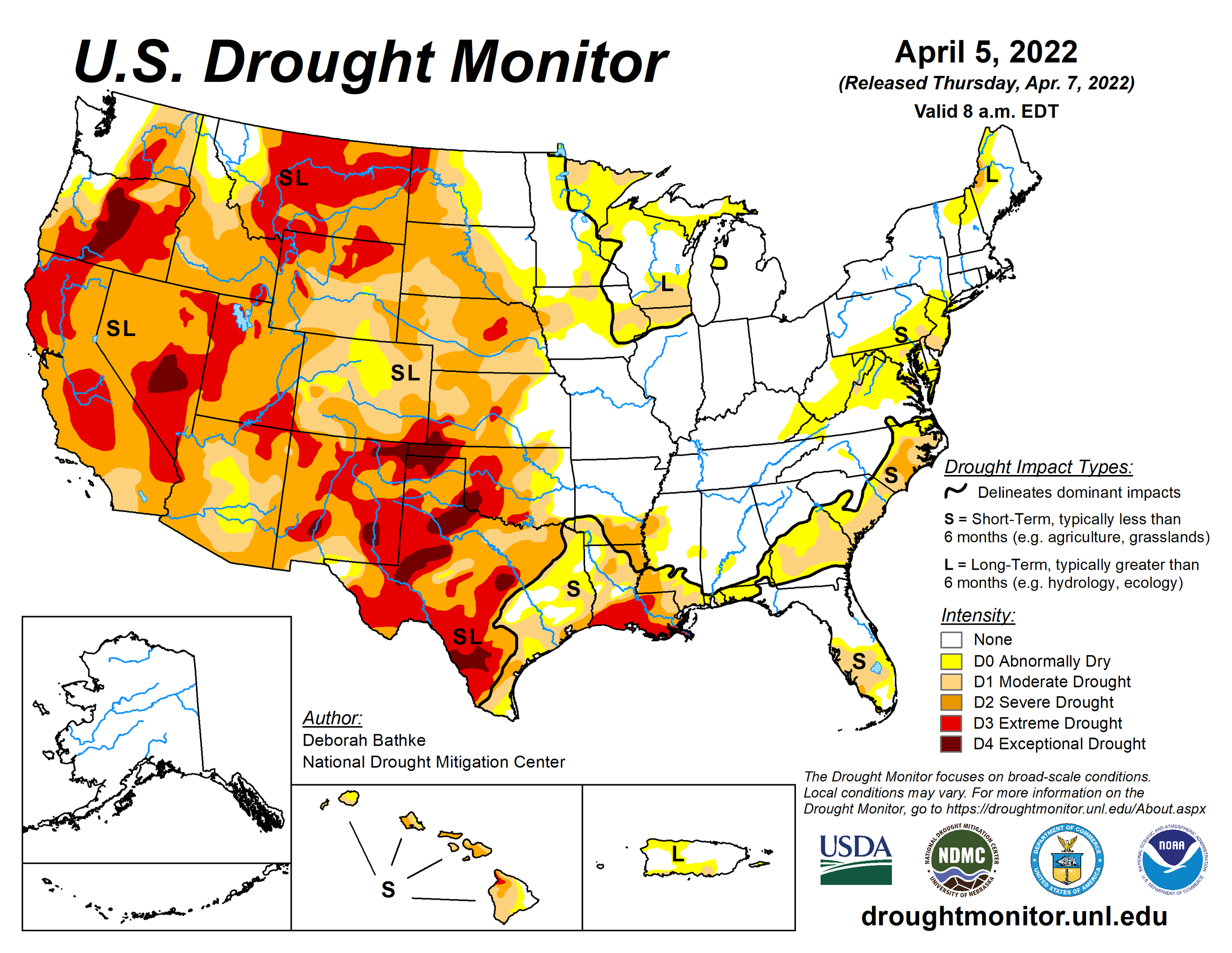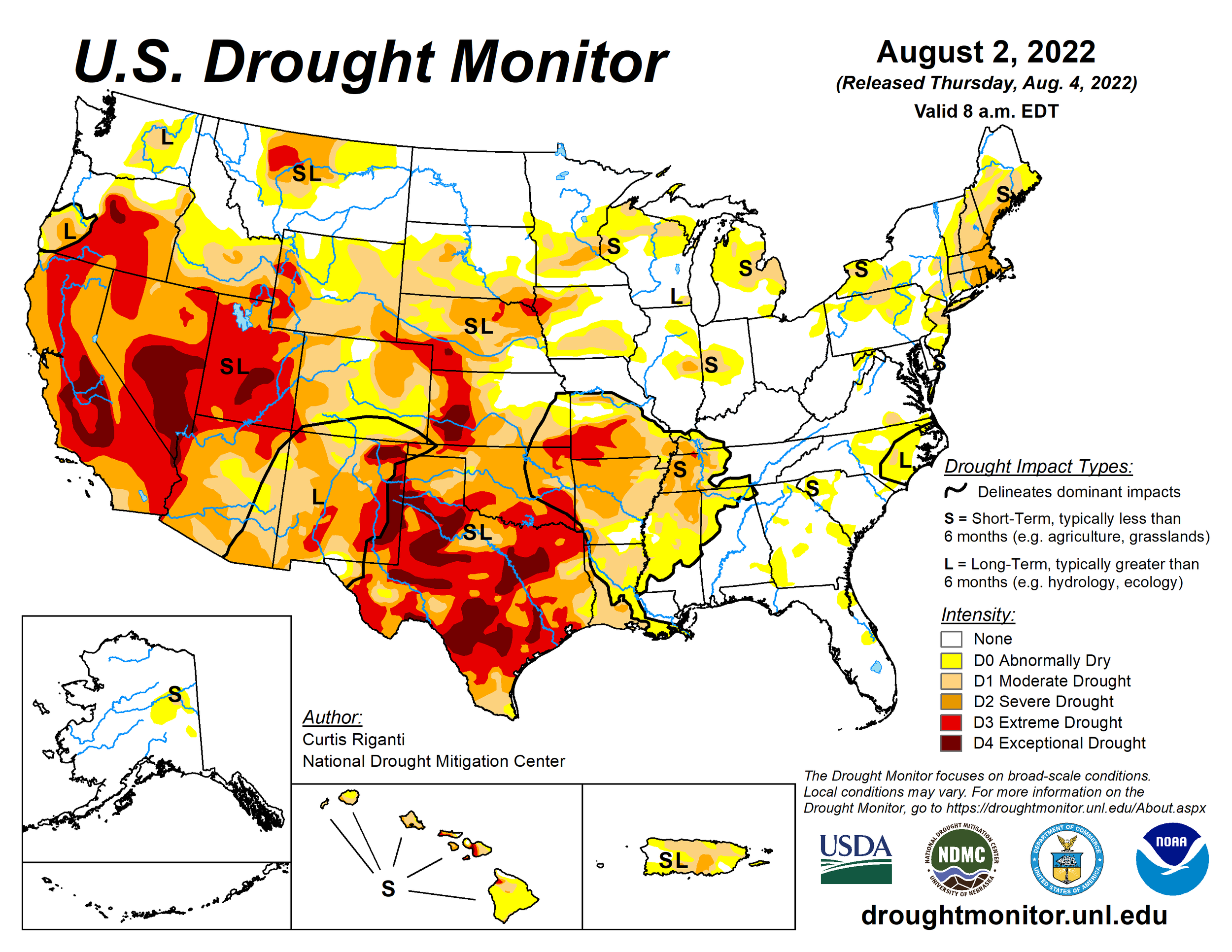 Why is millet price on fire? Basically acres are sus as my daughter would call it and the crop has burnt up. Look at the drought monitor over the past several months— in the weather section of this newsletter.