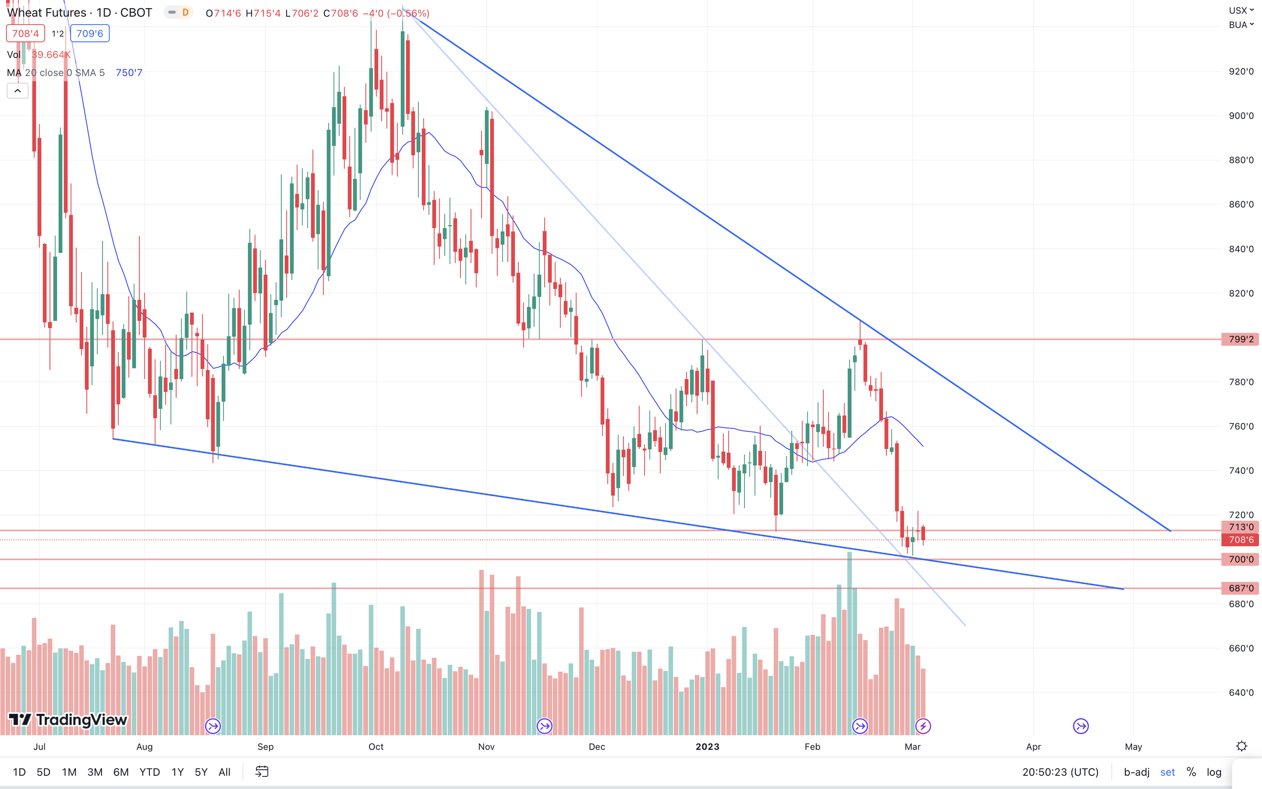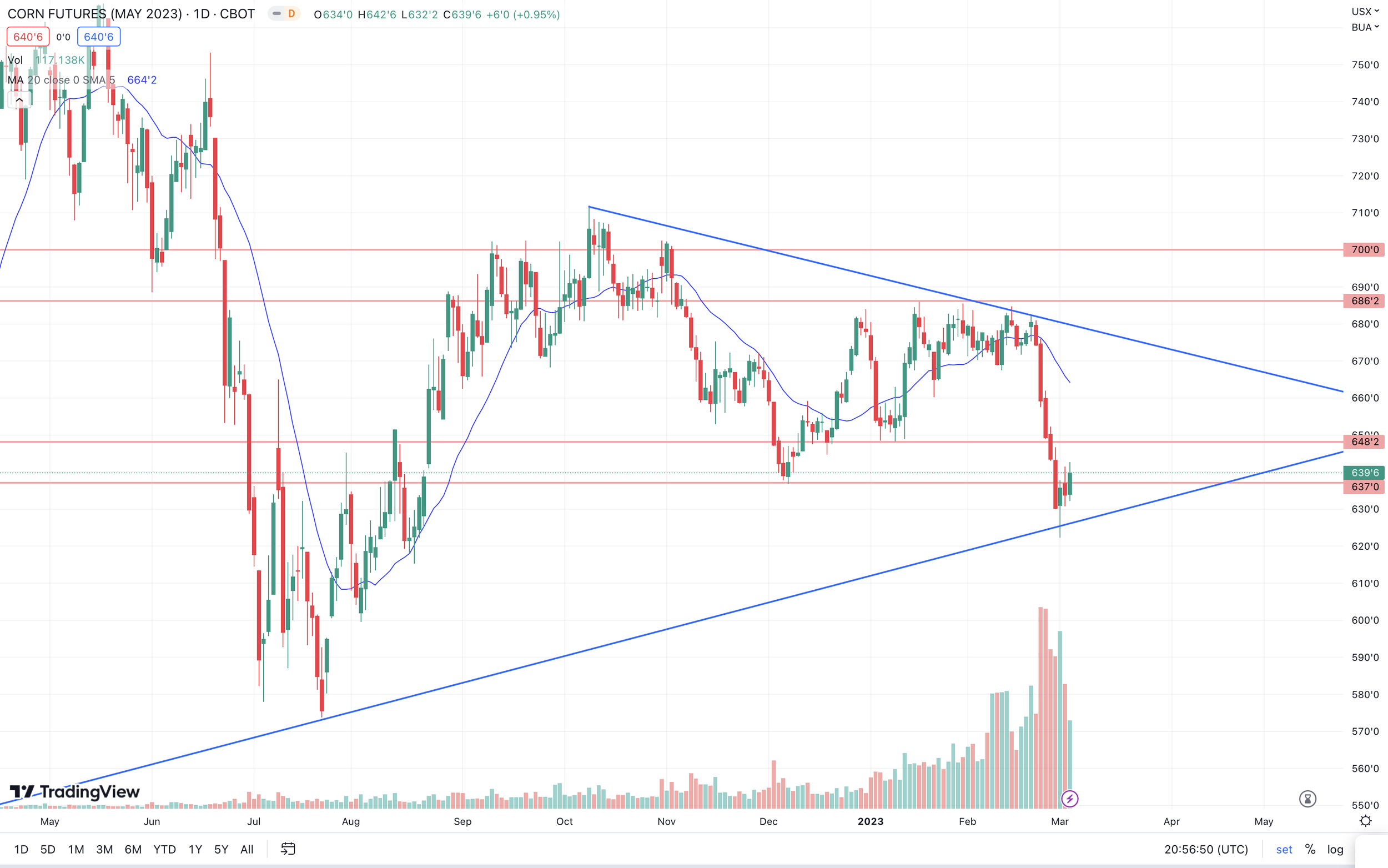 Wheat futures continue to struggle. As on the recent sell off broke our February uptrend. Bulls trying to find some footing. We got a small bounce but nothing to the extent we saw in corn and beans. War escalation and where the Black Sea agreement goes will continue to be the main factors, as the deal is set to expire in 2 weeks. Sure we can have more downside here. But I don’t think anyone is selling here. I’m expecting higher prices come spring/summer.