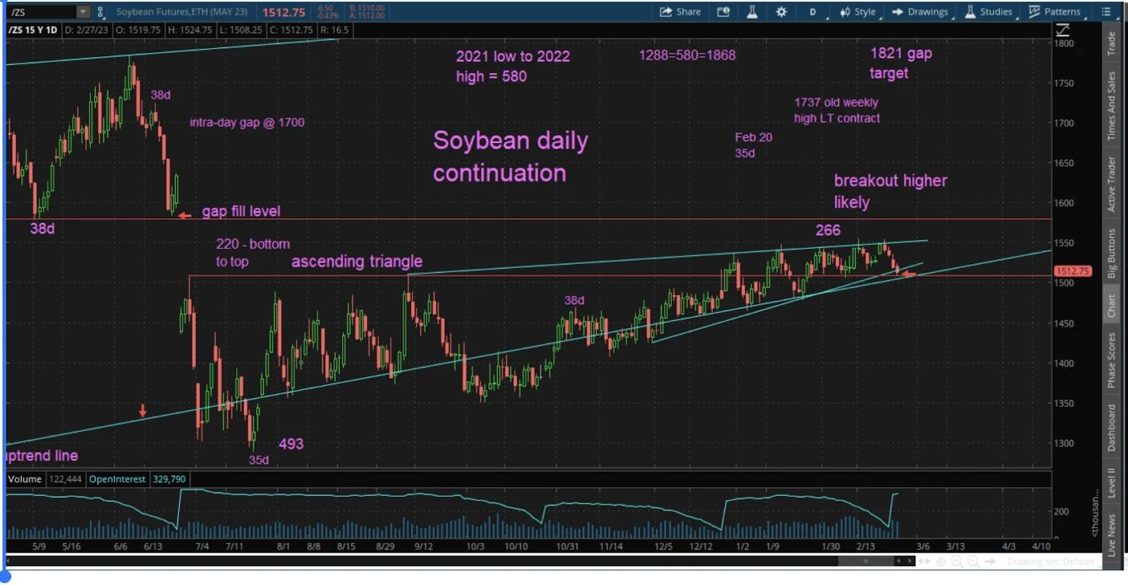 Many of you know that we follow the tech guy from Wright on the market. Have many of you noticed some of the possible targets he has had out for months for corn and soybeans. These targets are not numbers he magically made up, they come from self fulfilling systems that many traders use which helps them work. These targets blow out the old all time highs. Keep this in mind that as our markets take out resistance more and more buyers will jump on board.