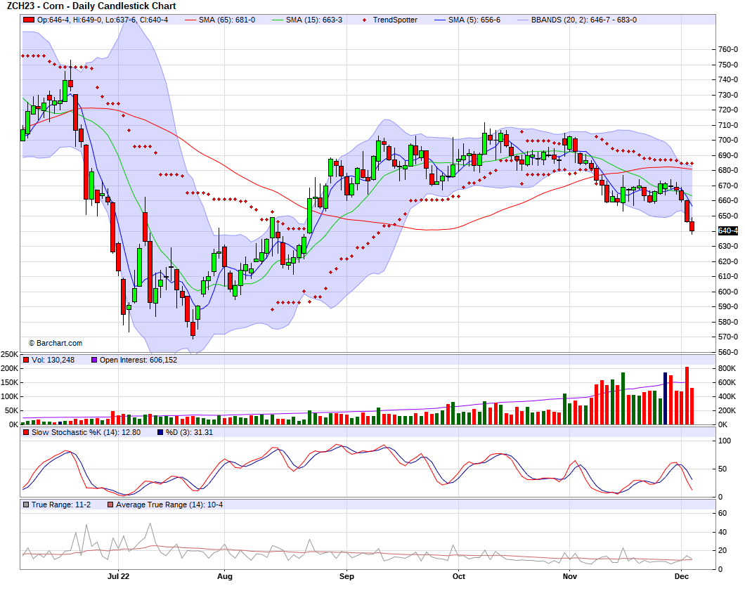 To see higher prices we will either need a major increase in demand, some South America weather scares, or possibly more war headlines. As there aren’t a ton of other bullish cards in the deck here looking short term. Corn is now trading at its lowest levels since August.