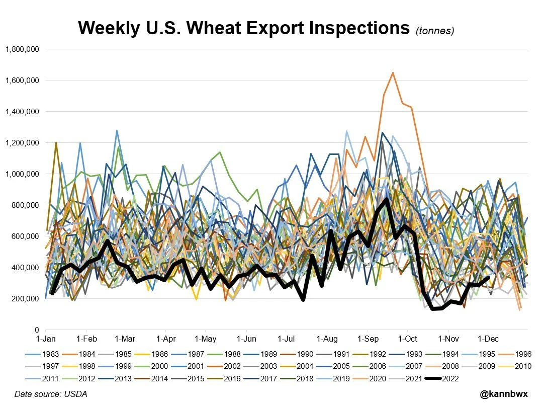 We also have Statistics Canada reporting that total Canada wheat production rose by nearly 52% in 2022, up to 33.8 million metric tons. This number would be their largest wheat production since 2020 and the 3rd largest on record.
