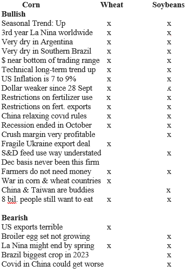 "It is time to reassess the factors that will drive corn, wheat, and bean prices into the first part of January and to a large extent, into the spring"