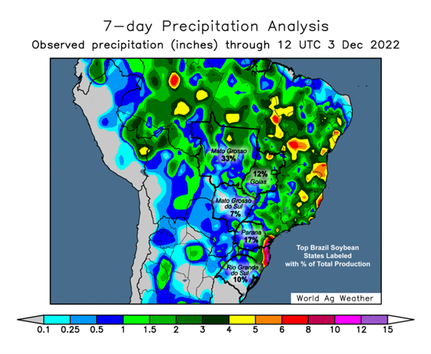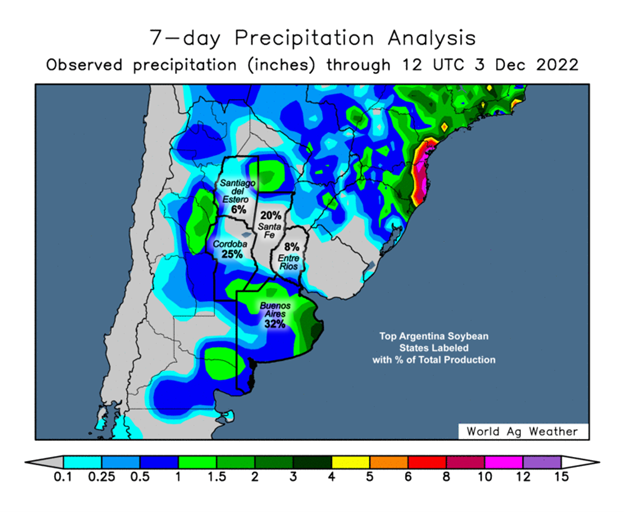Taking a look at Brazil, its about the same story it has been. Brazil looks pretty good so far so there isn't any concerns there for the time being. While Argentina has struggled but may see some meaningful rain to help their crops out.