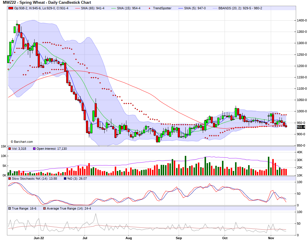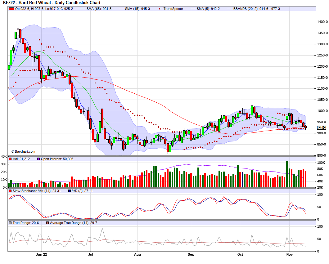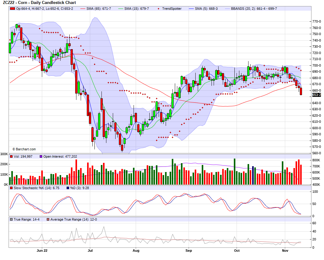 Corn is around -11 cents lower on the day, trading near the very bottom of its range. We are now almost -50 cents off our highs we saw not too long ago where trade was trading around $7. Now at the lowest levels we have seen since August.